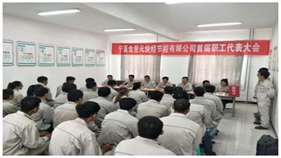 2018年5月31日,經固原市總工會、金昱元集團公司工會同意,金昱元廣拓能源有限公司工會委員會根據《中國工會章程》和《工會基層組織選舉工作條例》,按照民主程序,組織寧夏金昱元炔烴節能有限公司召開了首屆職工代表大會,選舉產生了首屆基層工會委員會委員和工會主席。