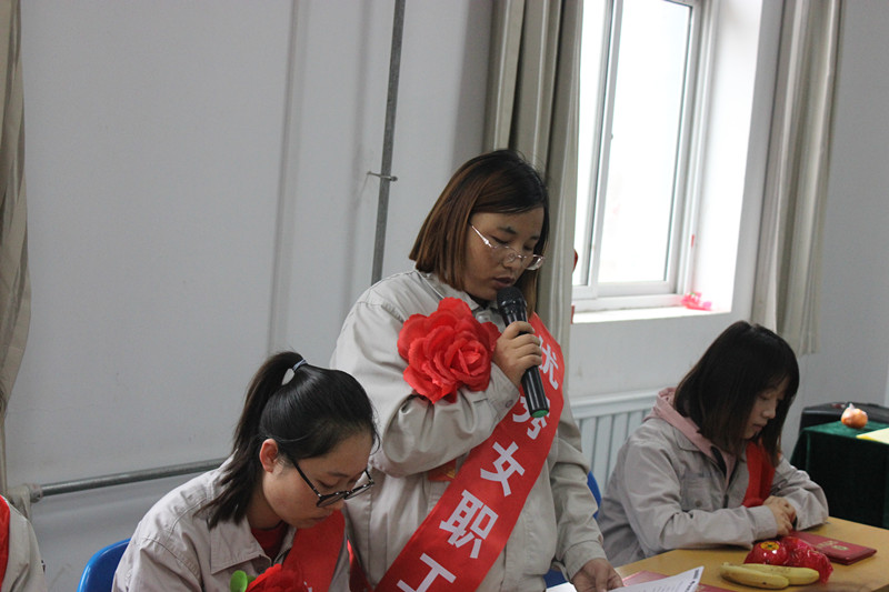 表彰了“巾幗文明示范崗”、“三八紅旗手”、“優(yōu)秀女職工”,并頒發(fā)了榮譽(yù)證書(shū)。隨后“三八紅旗手”代表劉芳芳、女職工代表李雪分別進(jìn)行了發(fā)言。