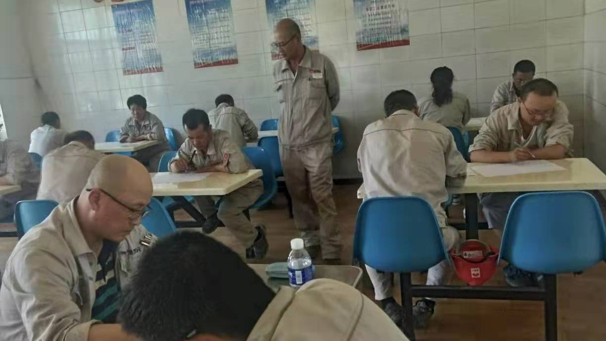 考試分為兩場進行,考場分別設在公司餐廳及會議室,此次考試以近期培訓的《危害生產安全刑事案件兩高司法解釋》、《危險性作業管理要求》、《電石、水泥系統較大風險作業安全管控措施》及管理人員應知應會知識為主,考試分為A、B卷組織進行,現場為避免抄襲現象,組織將手機集中保管,分離對坐。