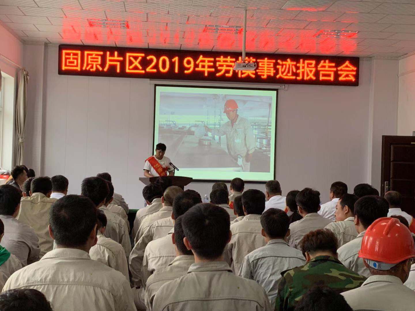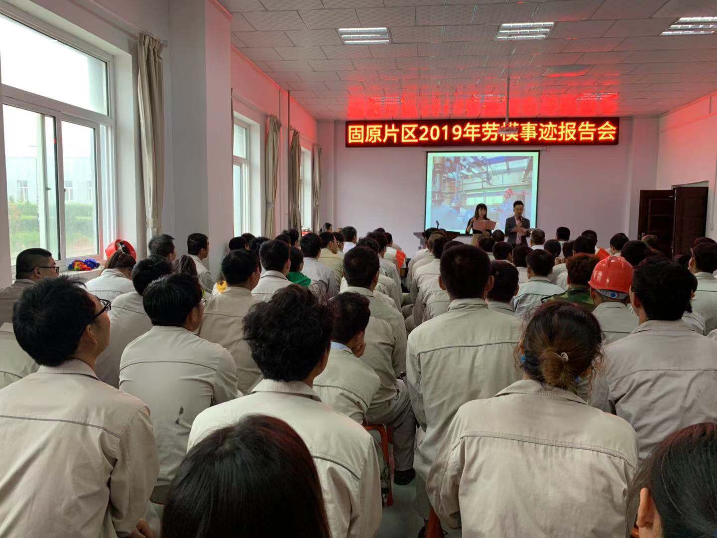 2019年9月5日,固原片區組織開展勞模事跡報告會,廣拓化工公司生產科科長鹿延軍同志、聚合裝置裝置長劉華同志作為勞模代表和優秀共產黨員代表分別做了個人事跡報告。