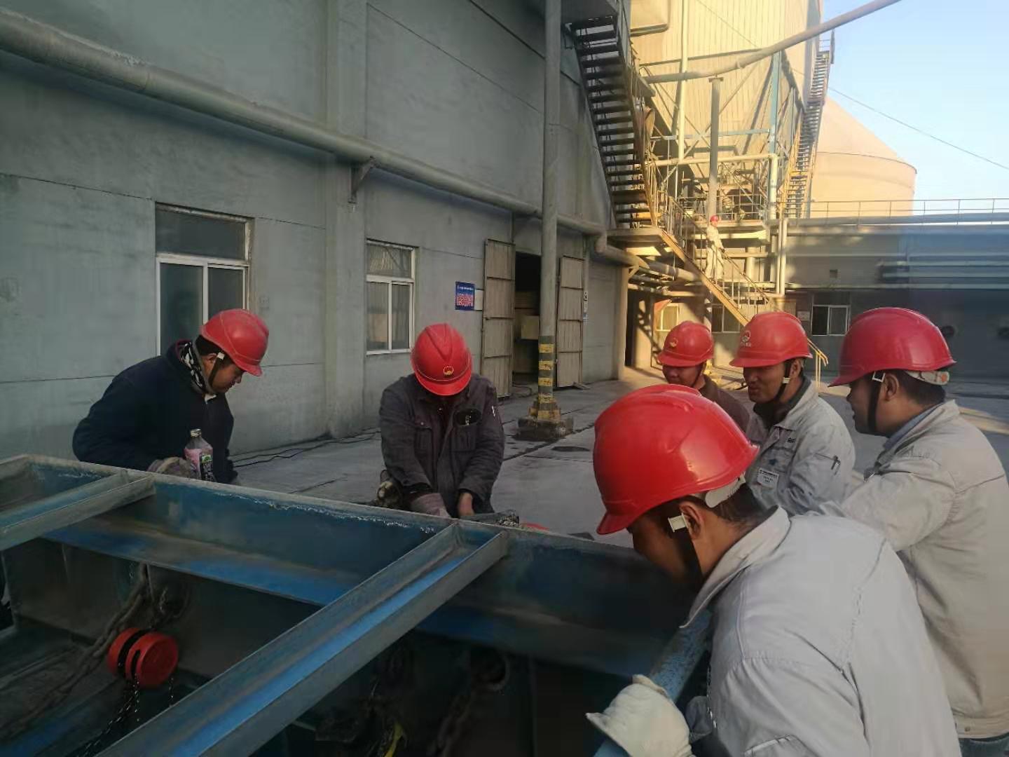 一、成品裝置長黃勃強帶領維修工對均化庫底空氣斜槽技改,認真辦理受限空間作業票證。指導維修人員計算材料,核對圖紙,然后利用簡單的工具就地進行比劃!