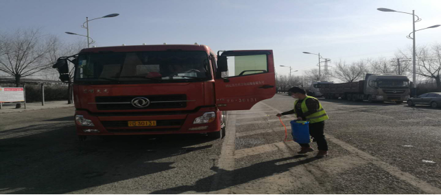 在公司北大門,他們對進出廠區職工及車輛登記,嚴格“疫情”防控工作。