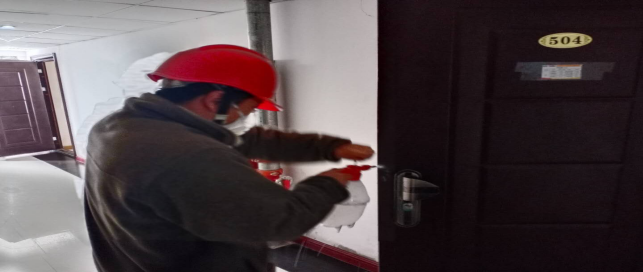 在園區南門,當日截止下午17時整,他們檢測、消毒、登記車輛61輛,人員64人,車輛正常,人員體溫均在正常范圍。