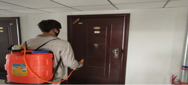 對宿舍消毒。