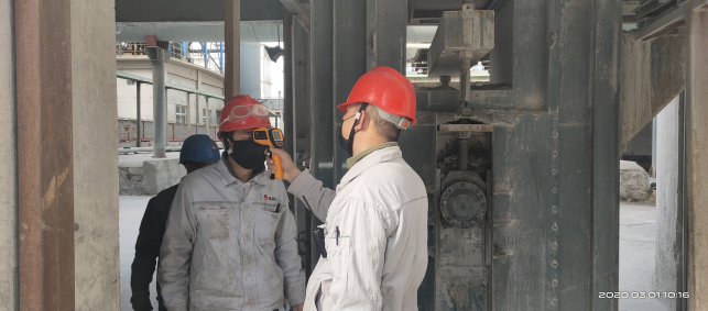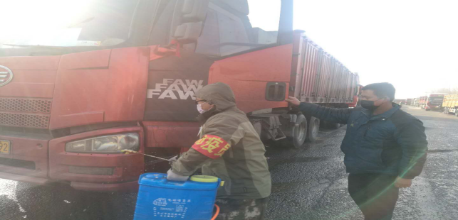 在園區南門,今日截止下午17時整,他們檢測、消毒、登記車輛92輛(其中水泥19車輛,熟料9車輛,2輛氧氣配送車),人員98人信息,體溫均在正常范圍,另外隨行26人體溫均在正常范圍。
