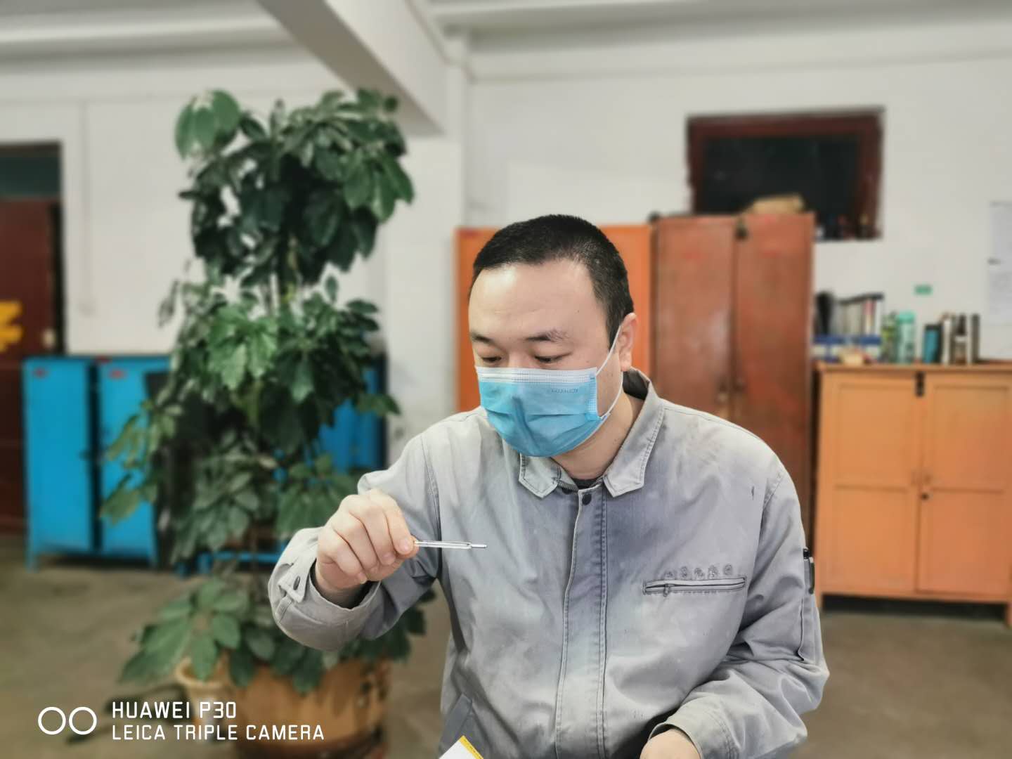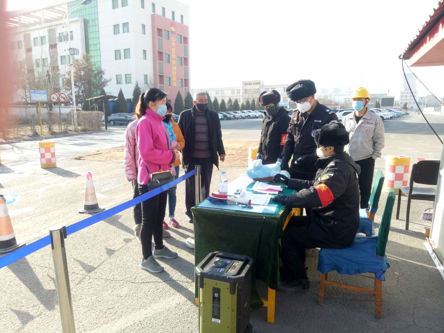 在廠門口,每天每位員工都自覺遵守著公司對疫情的各項措施。黨員、管理人員更是自覺輪值,嚴格執行消毒措施,幫出勤人員體溫檢測和進出人員的檢查登記。從一項項措施中可以看出公司領導對疫情的重視。