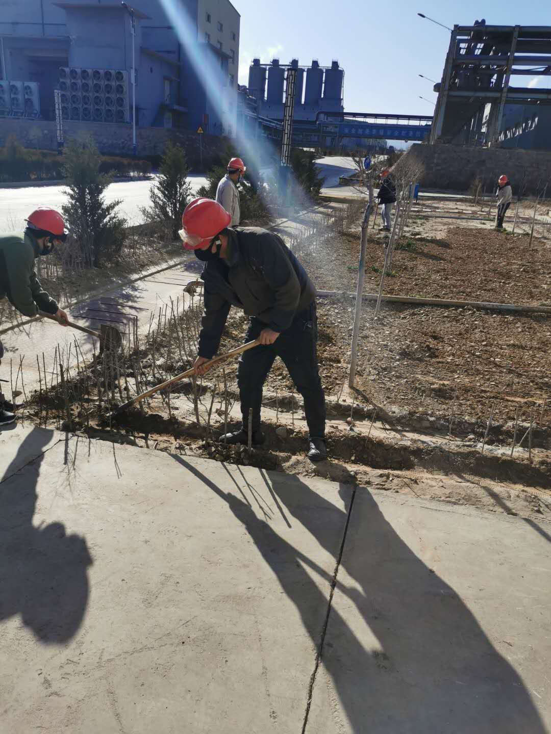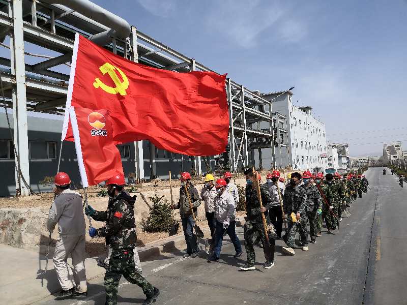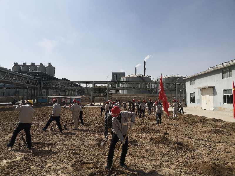 疫情防控下,黨員帶頭堅守一線不松懈;す军h支部書記賈存富帶頭奔赴綠化作業一線,組織各單位黨員對液化崗位土地進行平整,身體力行踐行“不忘初心,牢記使命”。