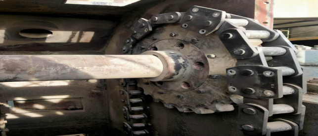 1909斗提機尾輪、板鏈、料斗及機頭,進行拆除更換。已完成機頭更換。