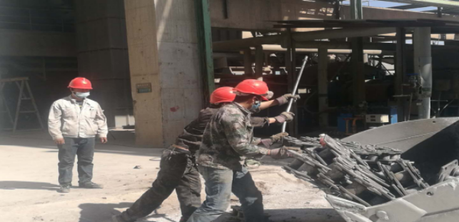 5)破碎機內部襯板檢查并緊固螺栓,破碎機內雜物清理(未完成);