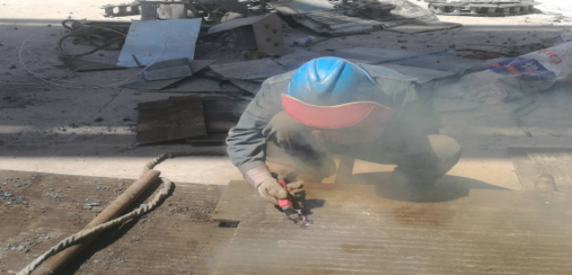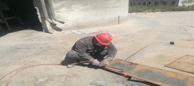 7)回轉窯輪帶擋圈及墊板補焊加固,檢查大齒圈齒面磨損并對齒面打磨修復(未完成);