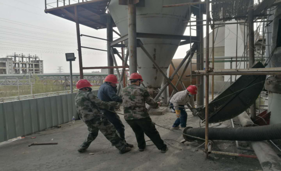 在清理結(jié)皮現(xiàn)場(chǎng),面對(duì)預(yù)熱器本身設(shè)備的炙烤外,還有夏季本身炎熱,而他們?cè)诿恳惶幾鳂I(yè)點(diǎn),都是那樣“激戰(zhàn)正酣”,他們輪流揮舞著大錘敲打著鋼釬,熟練、小心的用著“水炮”,一遍又一遍,敲碎了“結(jié)皮”,疏通了管道,每一點(diǎn)都是力氣活,耗時(shí)耗力。有時(shí)候,往往一錘下去鋼釬卻絲毫不動(dòng),但我沒從他們臉上看到灰心的表情。近12個(gè)小時(shí)的工作量,但從井然有序的場(chǎng)面我仍然可以看出他們有分工也有協(xié)作,同時(shí)銘記安全第一。
