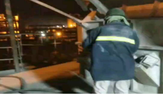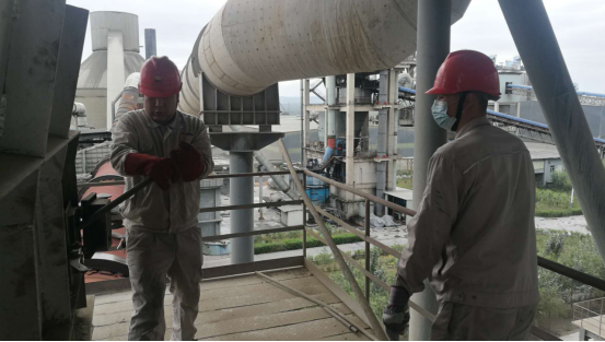 在預(yù)熱器每一層框架,讓我們都會(huì)有一種“未見其人,先聞其聲”的感覺,錘子的敲擊聲、檢修負(fù)責(zé)人的交底聲,聲聲入耳,像是一首和諧的樂章。