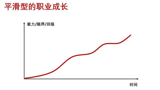 畫圖來顯示,就是下面這樣,你的職業(yè)成長路徑應(yīng)該是一條非常平滑的曲線:
