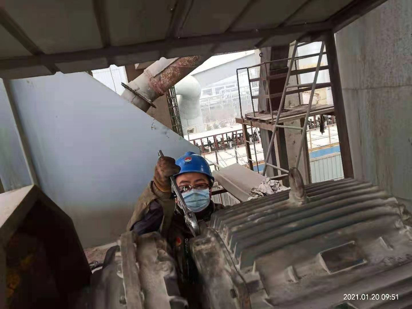檢修作業全程跟蹤,一天一夜檢修下來,有睡在辦公室沒回家的,也有吃飯就在作業現場……比比皆是?偨浝韰羌t衛更是如此,一個作業一個作業現場轉上轉下,從2026提升機作業點到回轉窯主傳減速機,再到篦冷機、煤磨、烘干破、預熱器、2301、2323、2401提升機以及高溫風機、回轉窯窯內及燃燒器檢修現場,指導,建議,一直值守在現場,忙著跟工人們同時收工,一整晚都未歸宿就寢室。工人們,裝置長擔心他的身體,時常提醒讓他回去休息一下,喝口水,而他放心、安慰大家說,“我和大家一樣的心情,早完工,產量就能早生產一點,我們后續生產就能輕松一點,大家加油”。一直以來,他和這個班子成員、工人們一起頂著嚴寒,一直堅守在現場安全履職和協調把控檢修進度,不厭其煩的一次次的詳細交底,直到一項一項設備檢修更換完畢。
