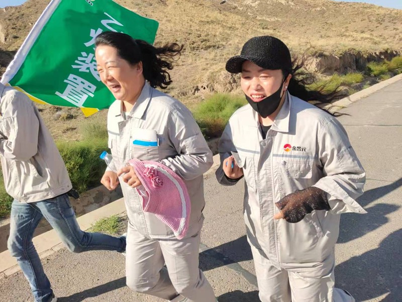 2021年8月27日資源再生公司領導委派7組以裝置為單位的代表隊參加青銅峽片區組織的以“磨煉意志、陶冶情操、完善人格、熔煉團隊”為活動主題的第六屆拓展徒步越野活動。工會李主席主持了活動開幕儀式,宣讀比賽規則,強調職工同志要發揚金昱元團結、拼搏、求實、創新的企業精神。賽出水平、賽出風格,順利完成此項活動。
