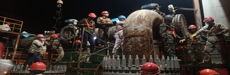 其他裝置檢修也是火熱朝天,來來往往,每個人都忙的不可開交,廢寢忘食,好像只要系統(tǒng)能夠順利開車,其他什么都不重要。此次停車檢修各裝置檢修內(nèi)容多,但是在每一級領(lǐng)導(dǎo)的安排下,每項檢修工作都在忙碌中進行著。一系統(tǒng)順利開車后,所有人員未松一口氣,接著二系統(tǒng)停車檢修,有了一系統(tǒng)檢修的經(jīng)驗,二系統(tǒng)檢修順利開車。