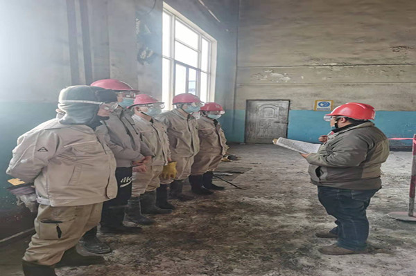 早上7:30分,只見參加檢修的維修工和操作工早已換好工作服全部抵達99%堿崗位,列隊站好聽從裝置長和安全員在檢修前安排的各自職責分工,并且對需要作業的項目進行了安全技術交底。此次檢修時間緊、任務重、勞動強度大,人員有各裝置派來協助的維修工和崗位操作工,大家齊心協力,不怕困難,一定要保質、保量地完成所有檢修任務,并做到“四不傷害”絕不能出現任何人身傷害事故發生。