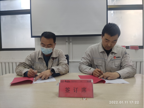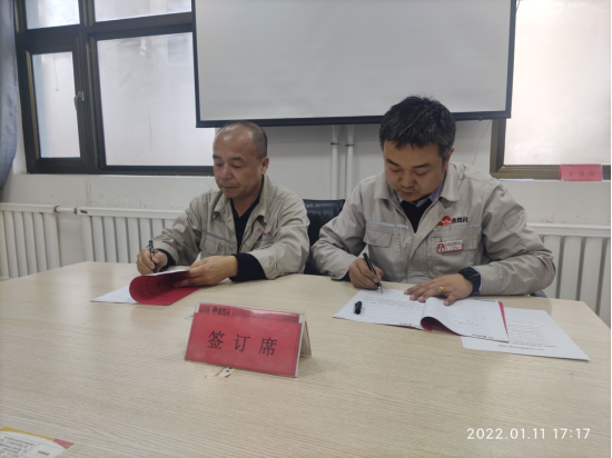 隨著會議議程的進行,公司總經理與副總經理、各單位負責人及副總經理與分管單位、職能主管科室與專業之間簽訂了“安全環保”與“經營管理”目標責任書。