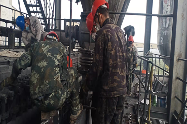 然而一波未平一波又起,在凈化刮板機(jī)檢修完成后的三小時(shí)之后,因2#爐凈化煙管4段溫度一直居高不下,擔(dān)心造成水管汽化,裝置領(lǐng)導(dǎo)與公司領(lǐng)導(dǎo)溝通后決定停爐對其進(jìn)行處理。自下午15:28開始停電處理直至18:17送電,為期2個(gè)多小時(shí)的停爐檢修及處理,讓站在頂樓搶修的人員直呼:“凍得都感受不到自己的耳朵和腳了”。雖然天氣如此惡劣,但面對生產(chǎn)任務(wù)緊張,面對檢修,我們的領(lǐng)導(dǎo)和現(xiàn)場檢修人員沒有一個(gè)人抱怨,有的只是手中不斷閃現(xiàn)的電焊火光和一心完成檢修工作的緊迫,在這里讓我們?yōu)樗麄?span>深深說一句:你們辛苦了。