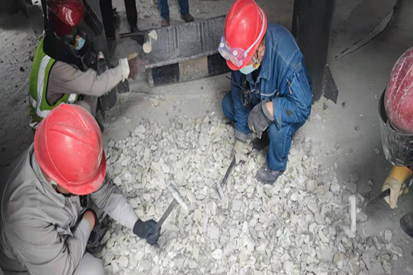 嚴格執行白灰窯燒嘴看火及出灰探料管理機制;白灰窯崗位每班安排1-2個人,每小時使用鋼釬對四層燒嘴處沉料情況進行確認,每次出灰必須檢查出灰機內是否有結瘤。發現燒嘴處物料燒結不沉料時,立即關小或關閉相對應的煤氣閥門,等待觀察沉料情況。發現出灰機有結瘤無法正常出料時,立即組織人員清理結瘤,避免物料煅燒超時燒結。