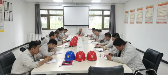 會前副總經理梁軍首先組織學習了某水泥廠回轉窯停車檢修窯筒體冷卻風機做動平衡檢測,由于“安全帶懸掛不當”,造成人員受傷的安全經驗分享,通報了全國、全區及行業內部上半年安全形勢。