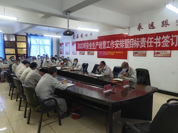 虎歲揚威興駿業 兔毫著彩繪宏圖。2023年1月12日14:00分,資源再生公司召開了2022年生產經營工作總結會、2023年度安全生產經營工作安排暨目標責任書簽訂。會議由公司副總經理雷銳同志主持,公司年薪團隊、職能科室長及專業負責人、裝置管理團隊和職工代表參加。