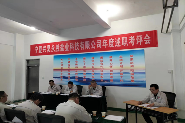 2023年11月14日,寧夏興昊永勝鹽業科技有限公司組織召開管理人員年度述職考評會議。職能科室負責人、專業技術人員、生產調度和各裝置正副裝置長等19名管理人員進行述職,33名職工代表列席會議。