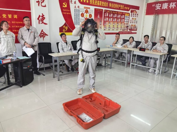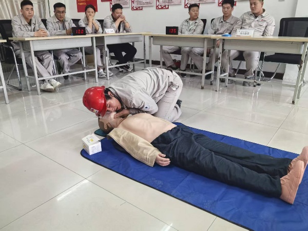 比賽現(xiàn)場(chǎng),參賽隊(duì)員們個(gè)個(gè)精神抖擻、斗志昂揚(yáng)。“心肺復(fù)蘇操作”“正壓式空氣呼吸器穿戴”兩個(gè)項(xiàng)目,選手們爭(zhēng)分奪秒?yún)s有條不紊:檢查患者意識(shí)和呼吸、檢查氣瓶壓力、調(diào)整背帶松緊、佩戴面罩并測(cè)試氣密性……一套流程行云流水,展現(xiàn)出扎實(shí)的技能功底與高度的安全意識(shí)。活動(dòng)現(xiàn)場(chǎng),公司安全總監(jiān)鐵旭東、安全主管何寧、海什全程監(jiān)督評(píng)分,并針對(duì)操作細(xì)節(jié)進(jìn)行實(shí)時(shí)監(jiān)控,將比賽轉(zhuǎn)化為安全培訓(xùn)課堂,達(dá)到競(jìng)賽和培訓(xùn)相結(jié)合。參賽職工紛紛表示,通過比武不僅提升了應(yīng)急處置能力,更深刻體會(huì)到規(guī)范操作的重要性。