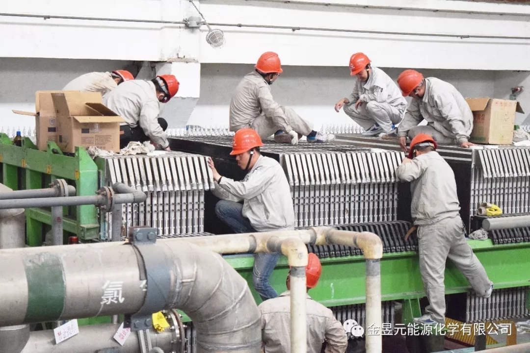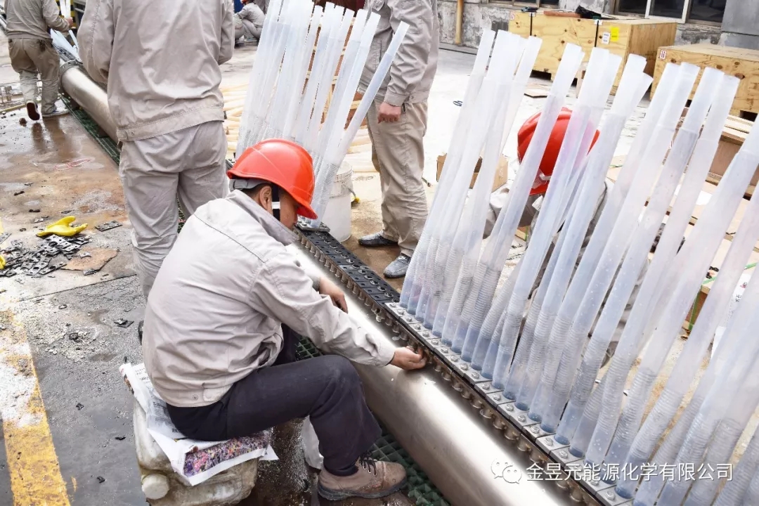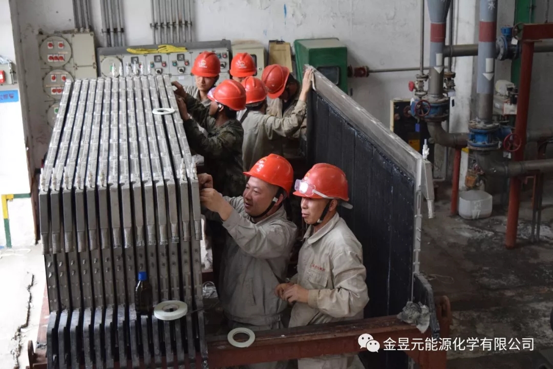 離子膜裝置B槽檢修作業(yè)現場,裝置將去年A槽檢修換膜總結的經驗和方法充分運用到此次作業(yè)中,同時裝置檢修人員積極與廠家技術人員在鏟膠、貼膠、貼膜等作業(yè)方法和技術上進行廣泛的交流學習,有效加快了檢修進度。