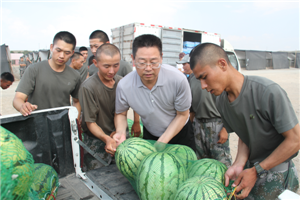 集團公司黨委副書記王立軍帶領的慰問團分別慰問了駐青三支部隊,向駐地部隊指戰員致以誠摯的問候和節日祝賀。在部隊營區,大家共敘軍民情誼,相互通報了各自在建設發展過程中的情況,了解對方存在的困難,就雙擁創建情況進行了交流,對下一步雙擁創建工作進行了討論。在某部隊外訓駐地,當看到外訓官兵頭頂烈日,經受風沙雨淋,吃住訓練在荒野戈壁灘和嚴肅的軍容風紀時,被部隊官兵頑強的意志品質感染。