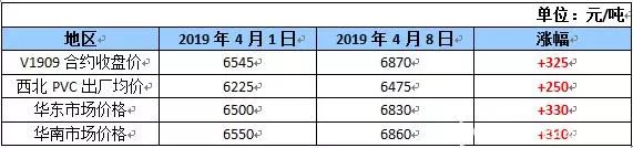 沉寂3個月的PVC,踏入4月后表現可謂突飛猛進。尤其在PVC期貨實現移倉換月后,漲價動能得到充分激發,大舉突破震蕩狀態,從4月1日至4月8日,大商所V1909合約收盤價漲幅近5.0%。而PVC生產廠家在庫存低位的情況下看漲情緒較強,助推漲價潮在短時間內愈演愈烈。