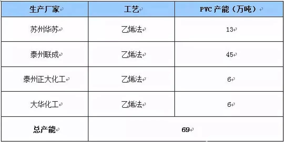 表3 江蘇省PVC產能統計