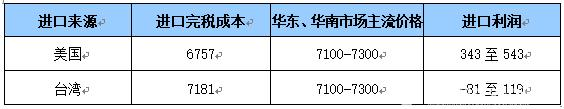 表1 進口利潤核算(單位:元/噸)