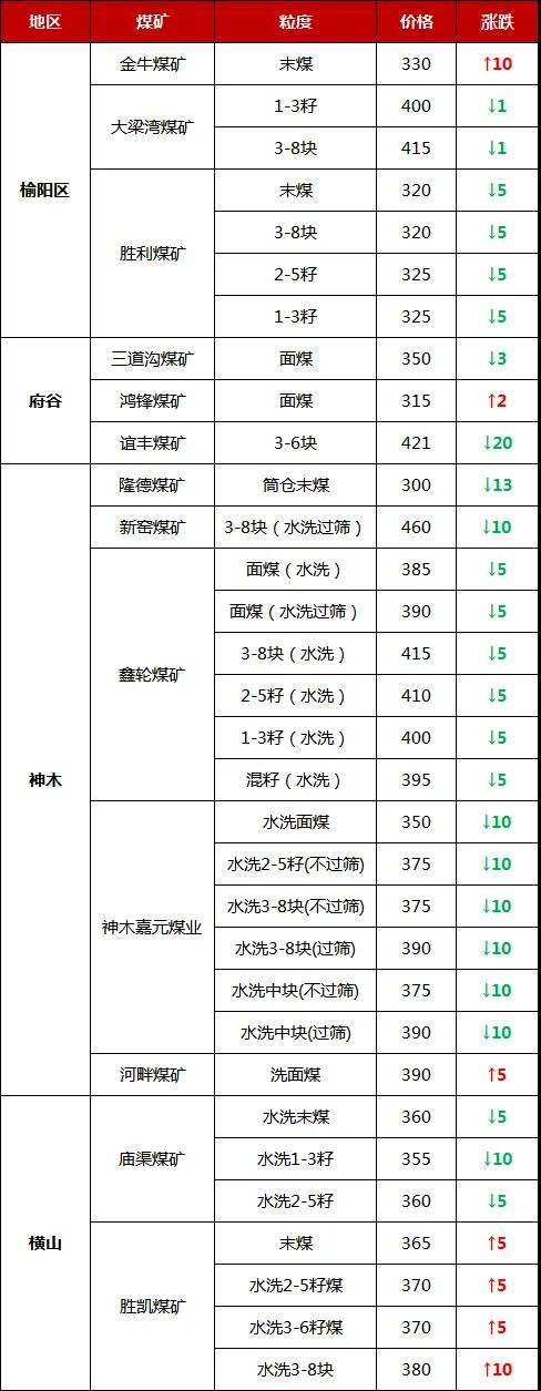 今日調(diào)整價格的煤礦有: