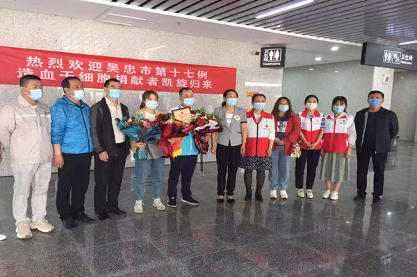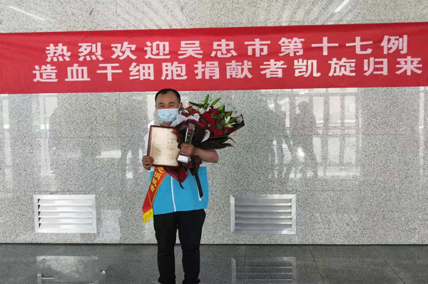5月12日,劉治成返回吳忠,集團(tuán)公司黨委副書記王立軍、支部書記唐亮等領(lǐng)導(dǎo),熱烈迎接這位造血干細(xì)胞捐獻(xiàn)者獻(xiàn)凱旋歸來。