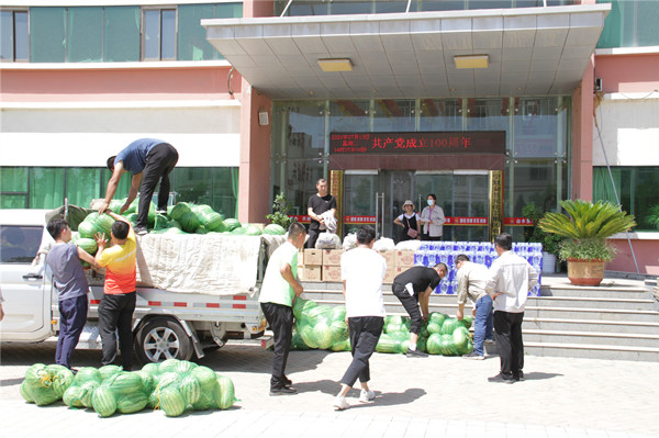 酷夏送清涼,絲絲潤心田。7月13日下午,青銅峽市委常委楊天壽一行蒞臨寧夏金昱元化工集團股份有限公司,為堅守在酷夏工作的一線員工送來防暑降溫物品,使廣大員工內心倍感絲絲清涼。