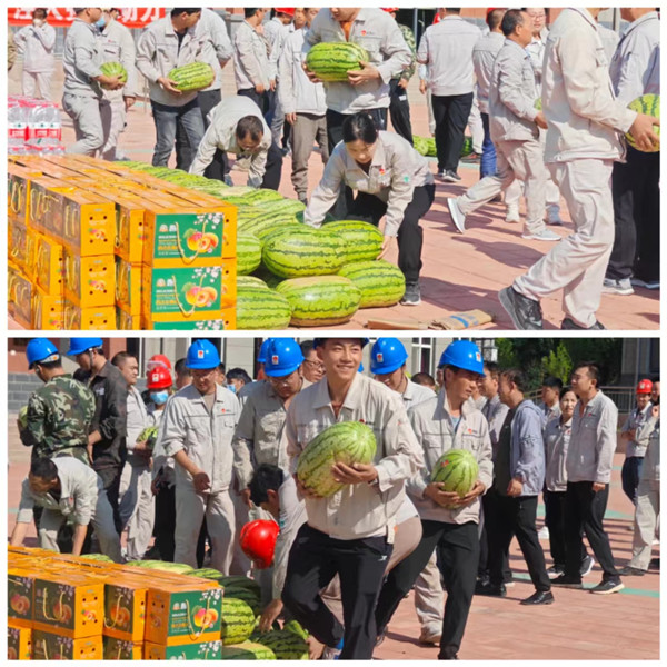 當青銅峽市委、政府和固原經濟開發區總工會的領導為金昱元股份公司奮戰在生產一線的員工們送上西瓜、飲料、茶葉、冰糖等防暑物品的時候,廣大員工對上級政府部門領導的關心和厚愛深表感謝。炎炎夏日,上級政府部門送來的關愛使員工們如沐春風,深受感動。