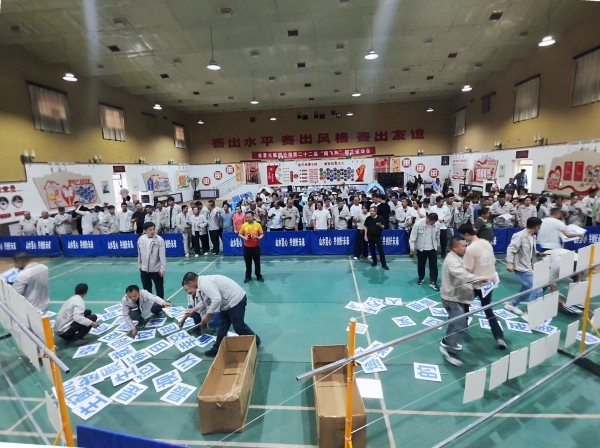 隨著裁判一聲令下,企業(yè)理念拼字比賽迎來激動人心的時刻。各參賽隊員不急不躁、有條不紊,大家集思廣益、默契配合,在最短時間內(nèi)準確拼出“踐行綠色發(fā)展 留駐青山綠水”“山水昱心 共創(chuàng)好未來”“安全就是幸福 安全就是效益”等橫幅。