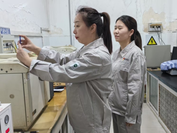 重崗受任,不辱使命。2012年,妥玉英被調到分析崗位,這一干,就是13年。在分析崗位上,她對待取樣、分析、復檢等工作一絲不茍。她的專注就像一位技藝精湛的工匠對待自己的作品,不容許有絲毫瑕疵。慢慢地,憑借過硬的專業技能,她從一名普通的分析工成長為分析班長。自此,她深知自己肩上的擔子和責任更加重大。她明白,要當好班長,帶好隊伍,必須做到更加“高”“精”“!。于是,查書籍、勤琢磨、多對比成了她攻克技術難關的訣竅。她如同一只勤勞的蜜蜂,腳勤、嘴勤、腦勤,在班組里樹立了模范標桿,同時帶出了一支作風過硬的分析化驗隊伍。
