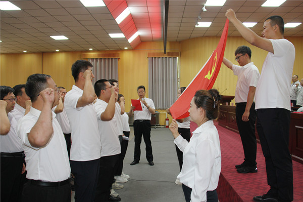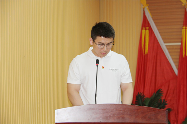 新黨員代表李愛軍作表態(tài)發(fā)言。他號召廣大黨員不忘初心,勇挑重擔、銳意進取,時刻為企業(yè)發(fā)展和國家建設貢獻智慧與力量。