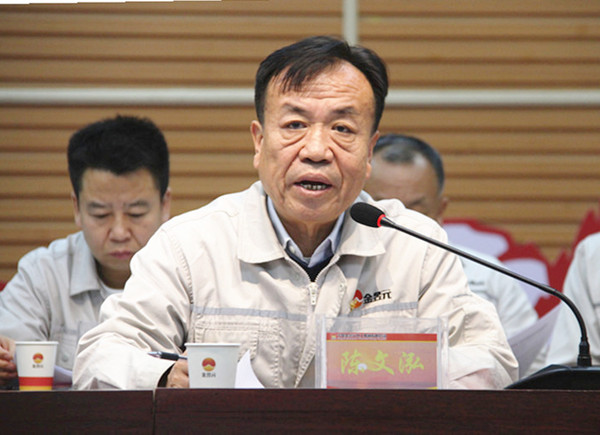 金昱元股份公司黨委書記陳文泓同志作題為《強基聚力 融合賦能 繪就蓄勢奮進新篇章》工作報告。